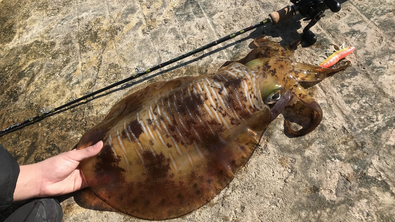| 珠海の離島にて。重さは2.5kgちょい超え。 仲間内でも記録は破られてない。 破られるまで、エギングをするつもりなし。 |