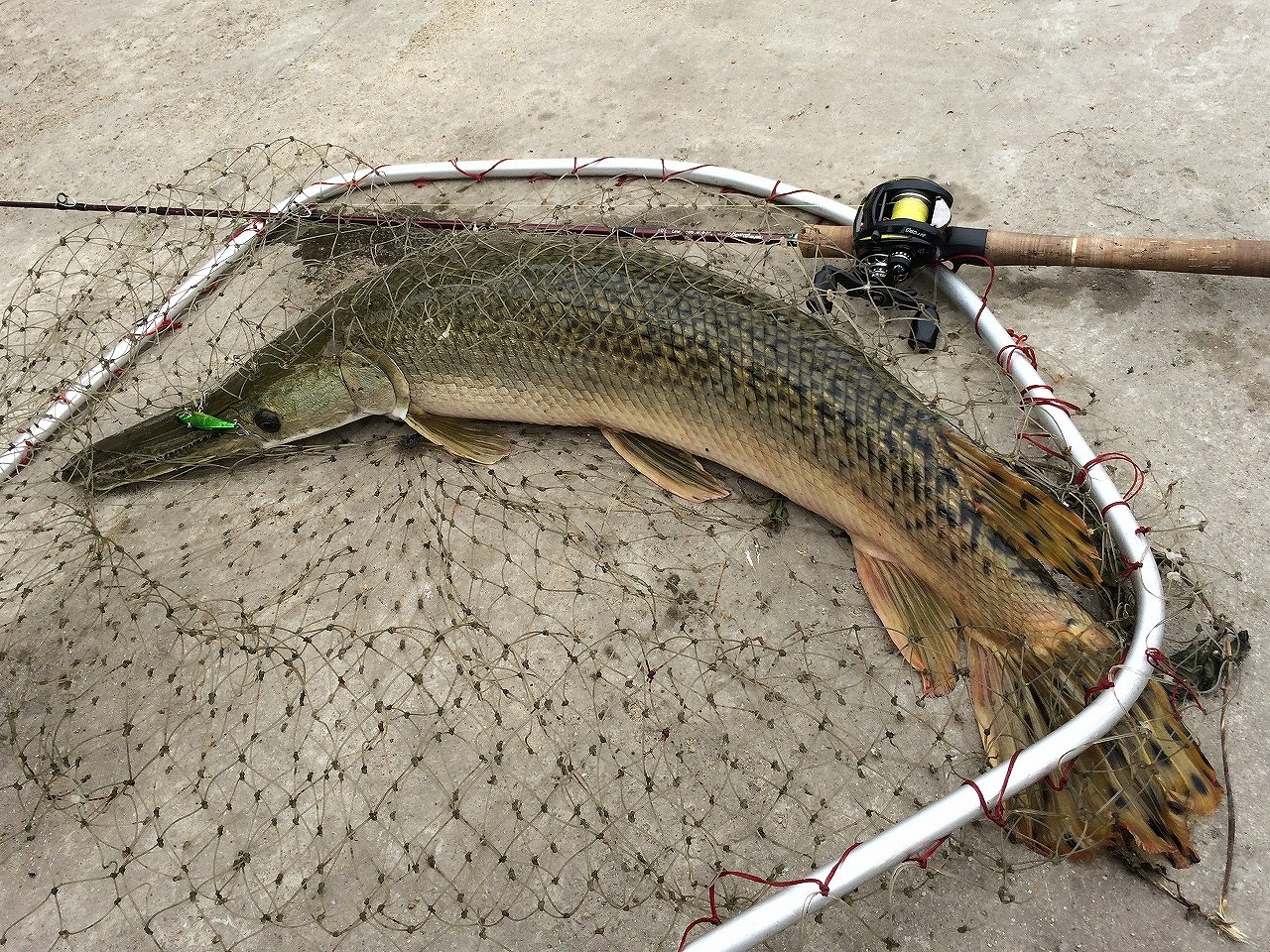 | 深センの釣り堀にて。 ルアーアングラーなら興味ある魚っすよね。 本場南米に行けないボクには釣り堀でもヨシ。 |