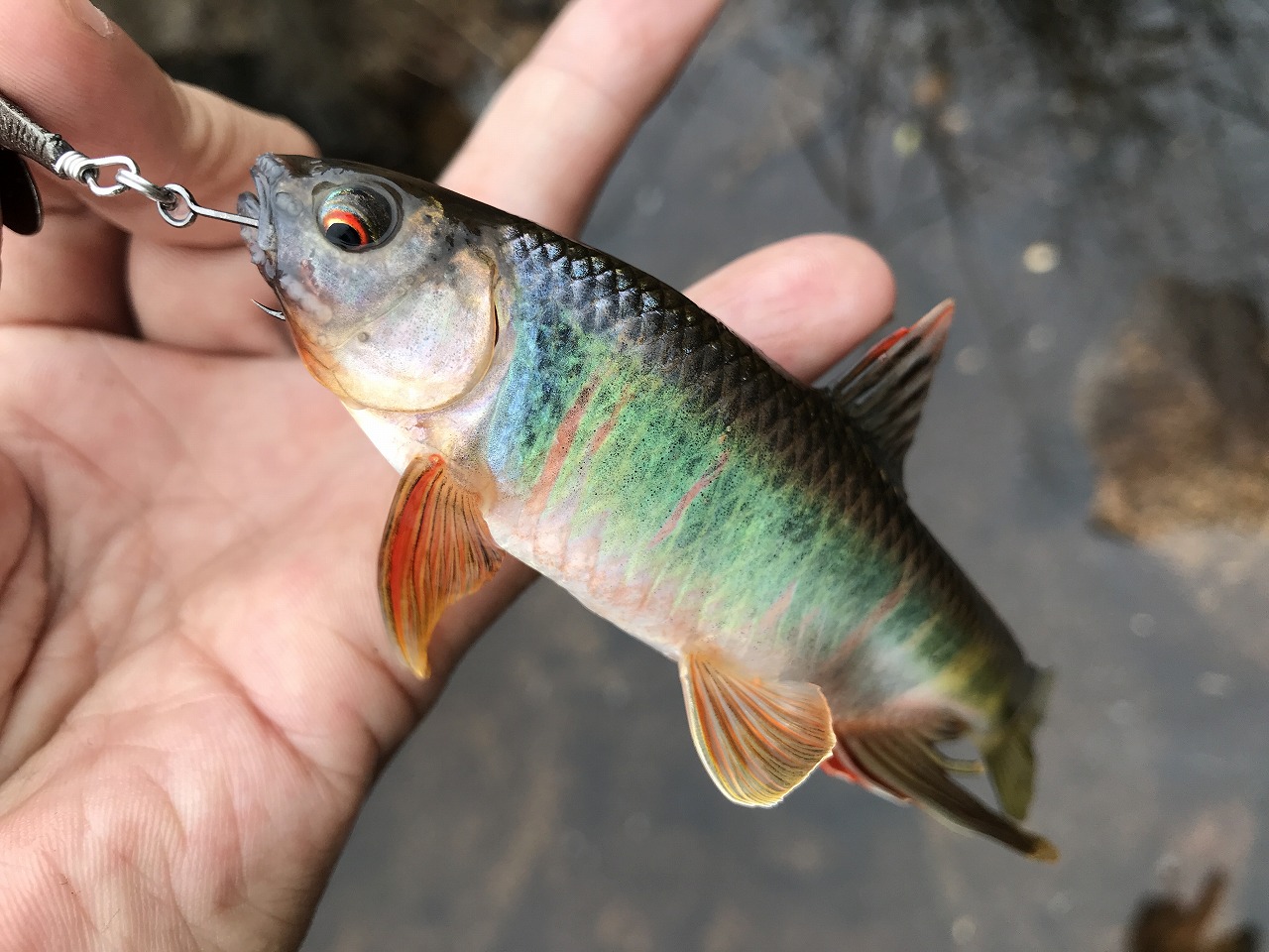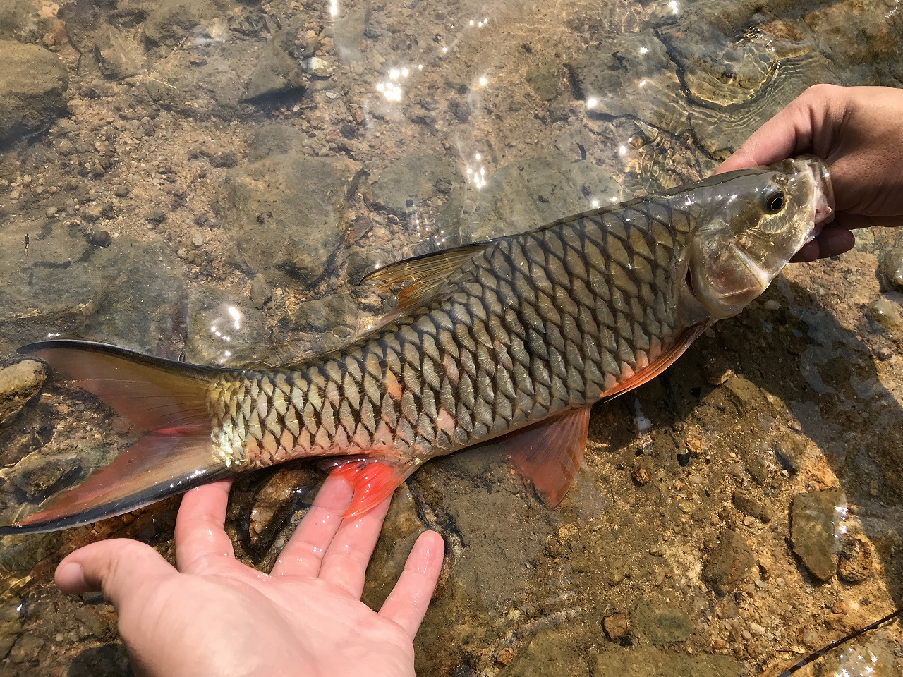 | 香港の河川にて。 ニジカワムツって呼び名はLefty Hさんの命名。 レッドリスト入りしてるが、意外と簡単に釣れる。 |