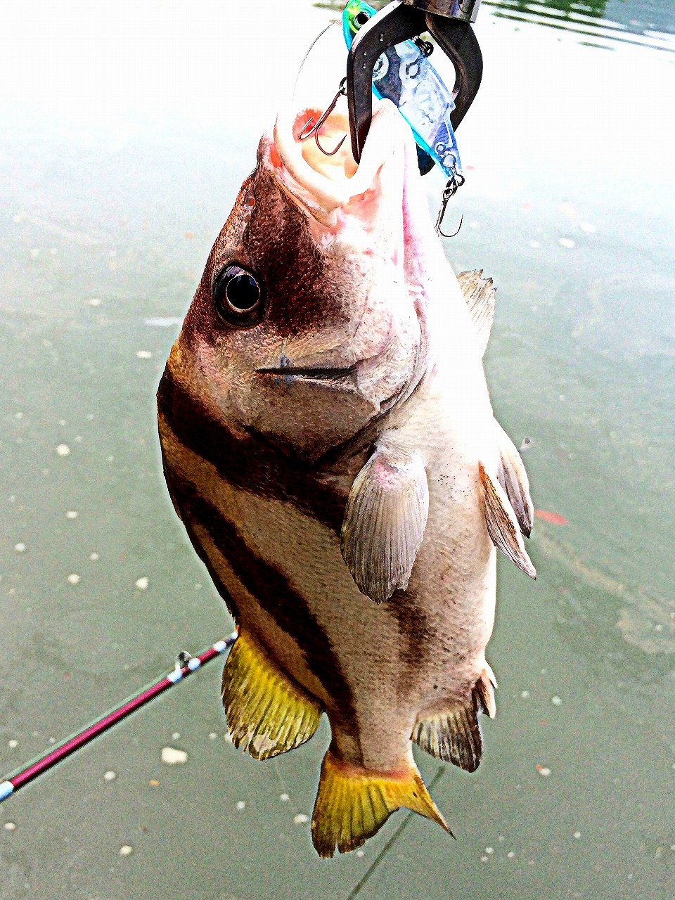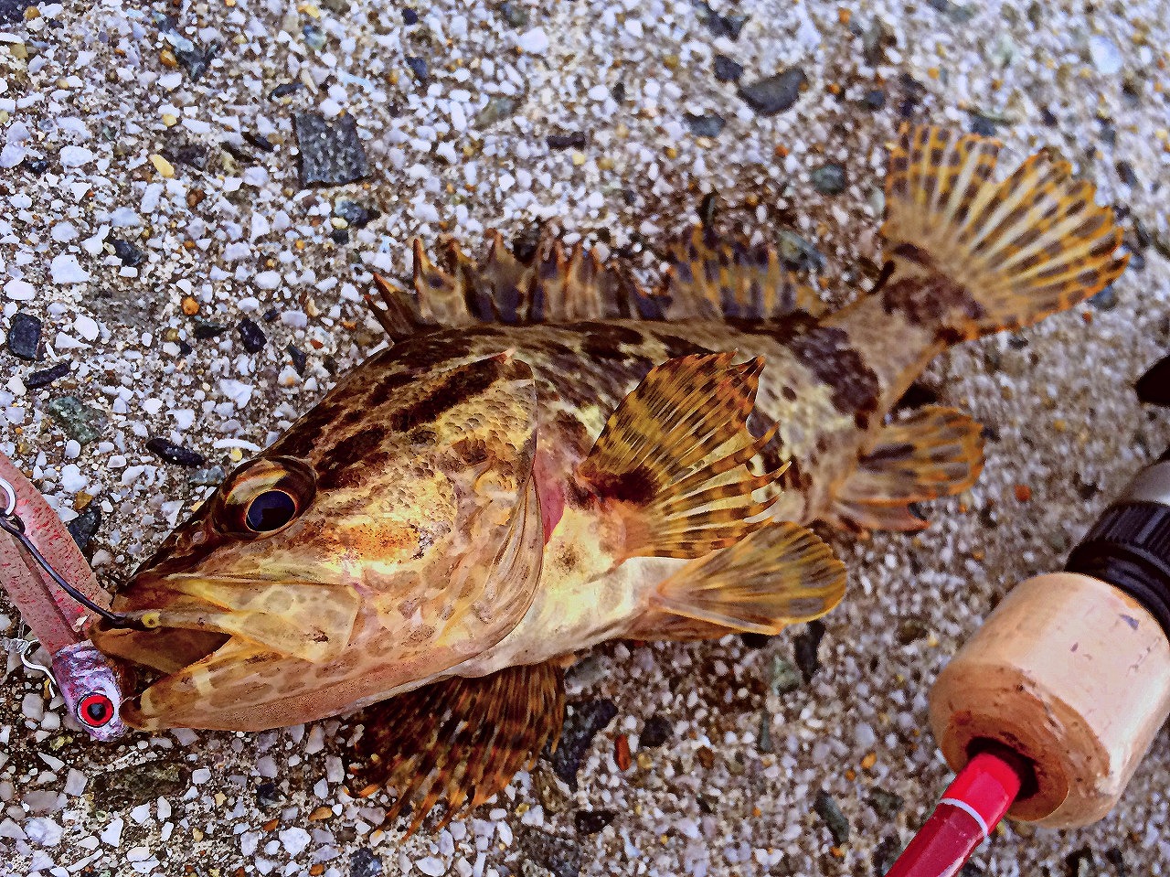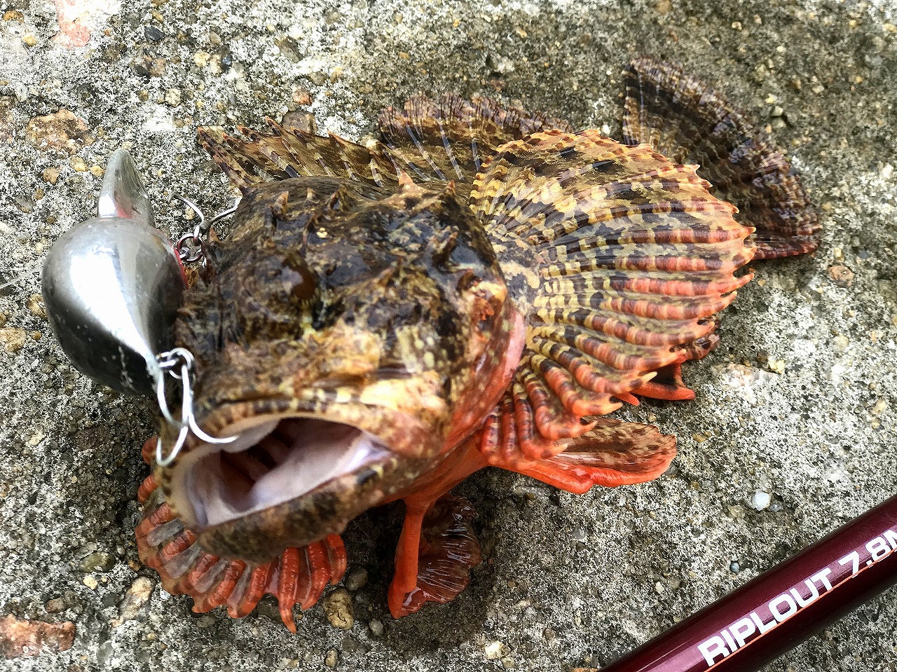 | 香港の海にて。 カサゴ狙いで時々釣れちゃう。 カサゴより大きいし、カッコ良いんで、嬉しい外道。 |