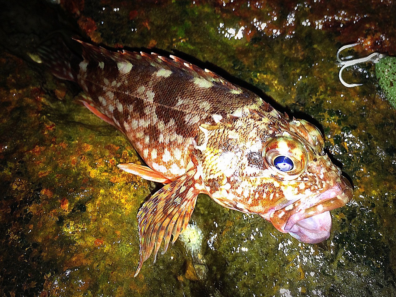 | 珠海の無人島にて。 カサゴとほぼ同等サイズ。 カサゴに混ざって釣れるとウレシイかな。 |