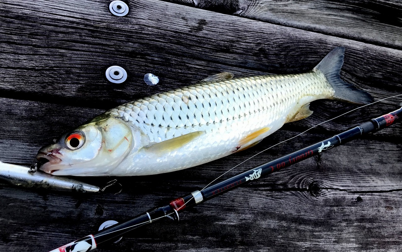 | 河南省の河川にて。 トップで誘うとナブラみたく、水面が大騒ぎになった。 中国での呼び方は馬口。なんで? |