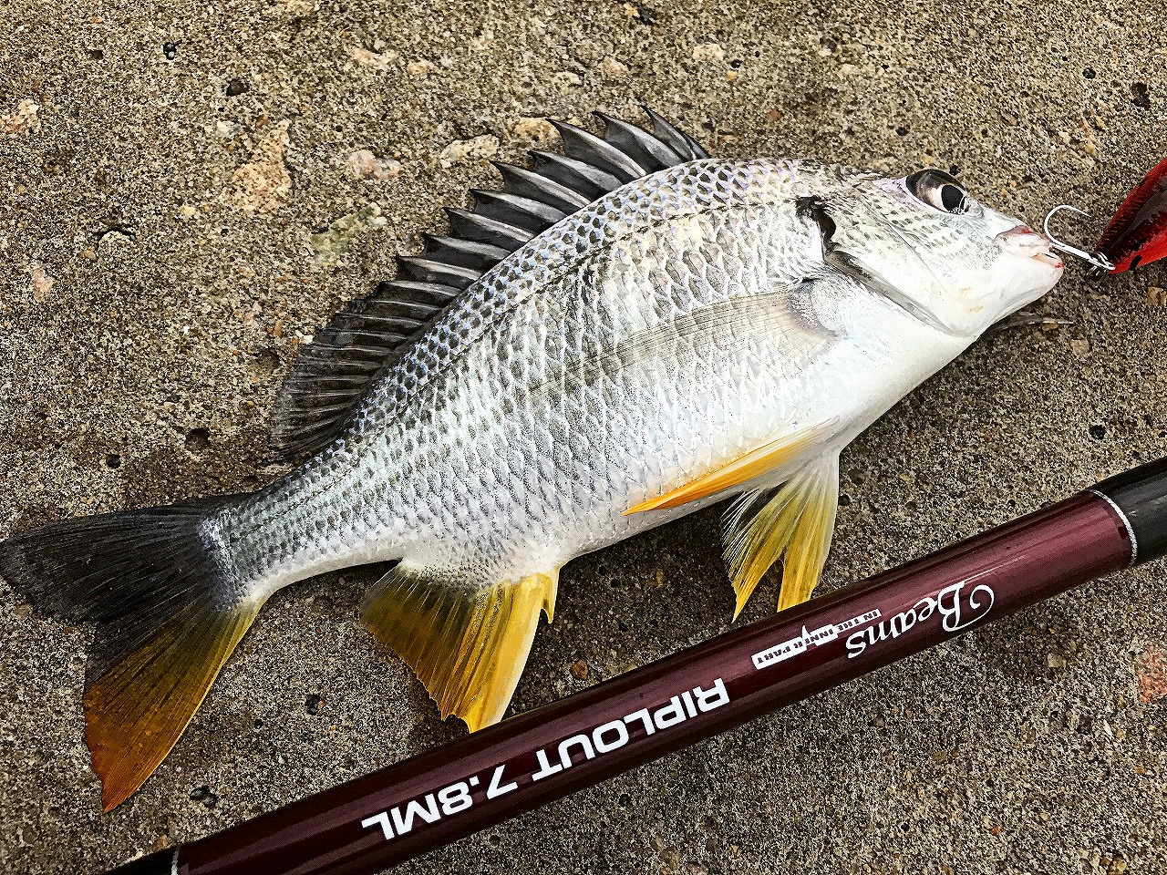 | 珠海の離島にて。 別名クイーンフィッシュ。 もう少し大きいサイズを釣ってみたい。 |