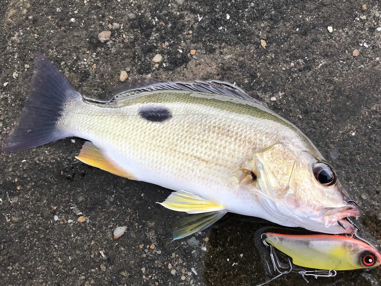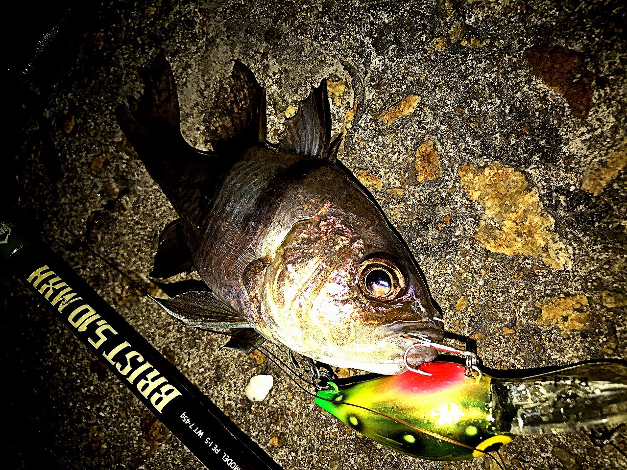 | 地元下関の波止場にて。 地元で遊んでると時々釣れる。 確実にロックオンできる攻略が欲しいね。 |
