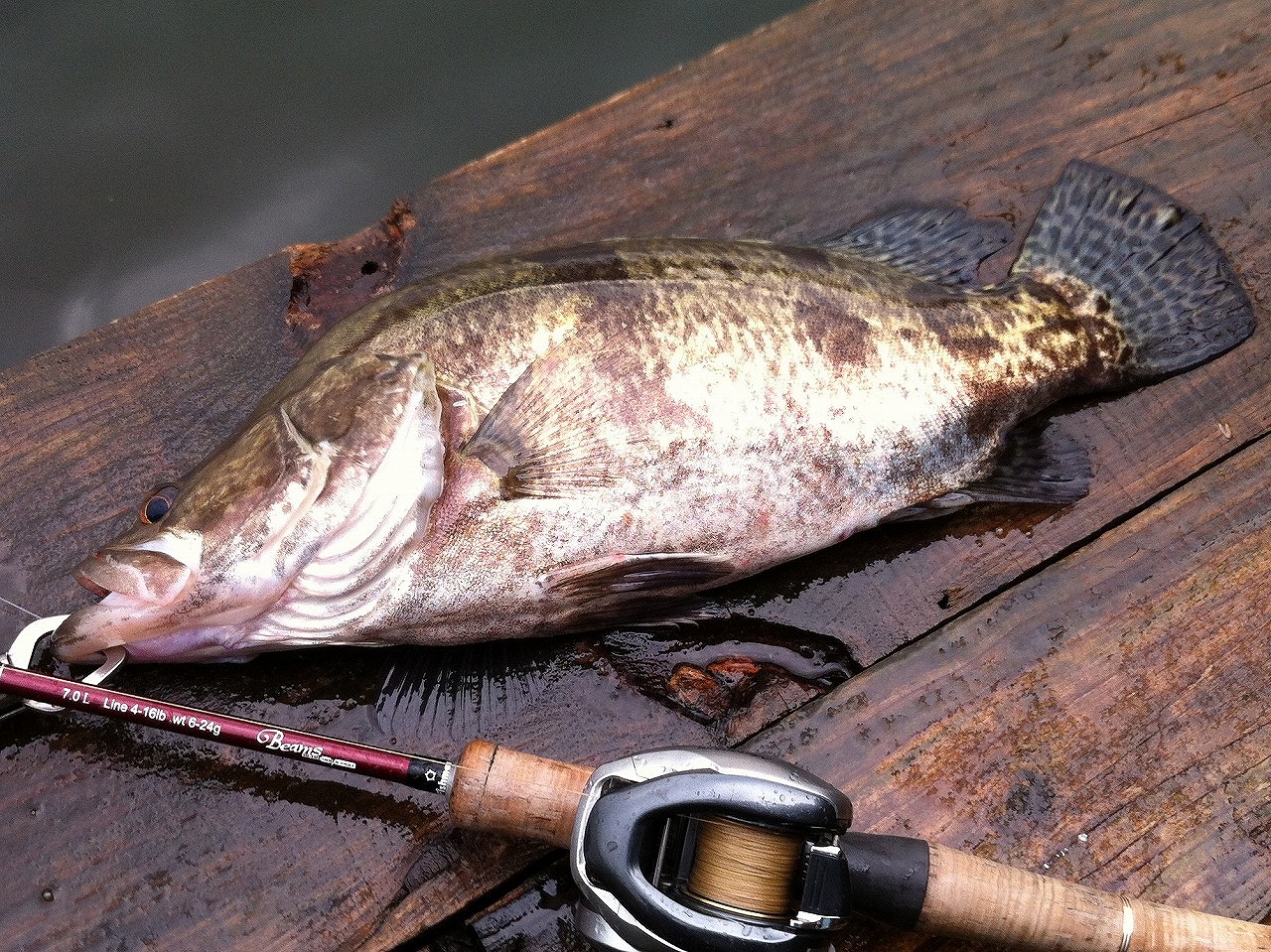 | 中山の釣り堀にて。 見た目通りパワー抜群。 バイブレーションをフォールさせる釣法が堅いと思う。 |
