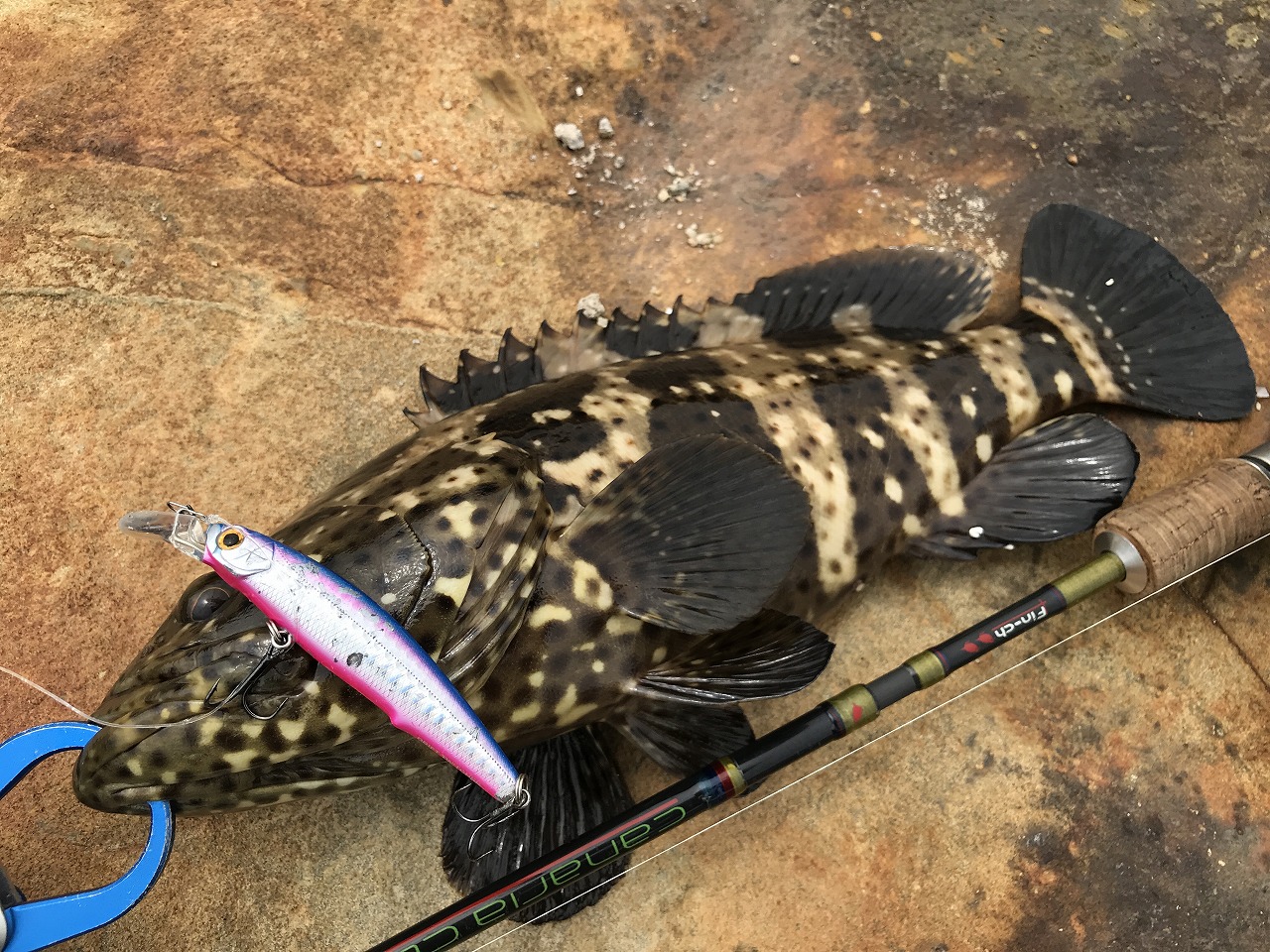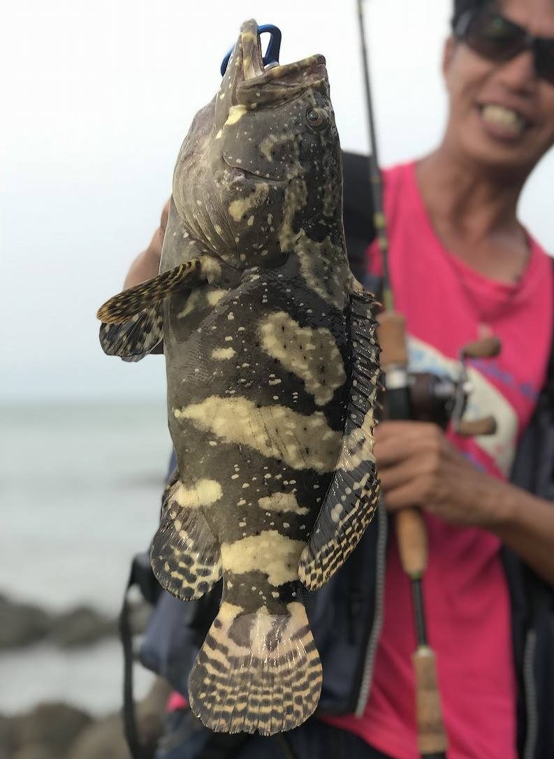 | 珠海の無人島にて。 華南エリアのハタ系統で最も目にする魚。 高級食材なんで、釣れたら家内に即報告。 |