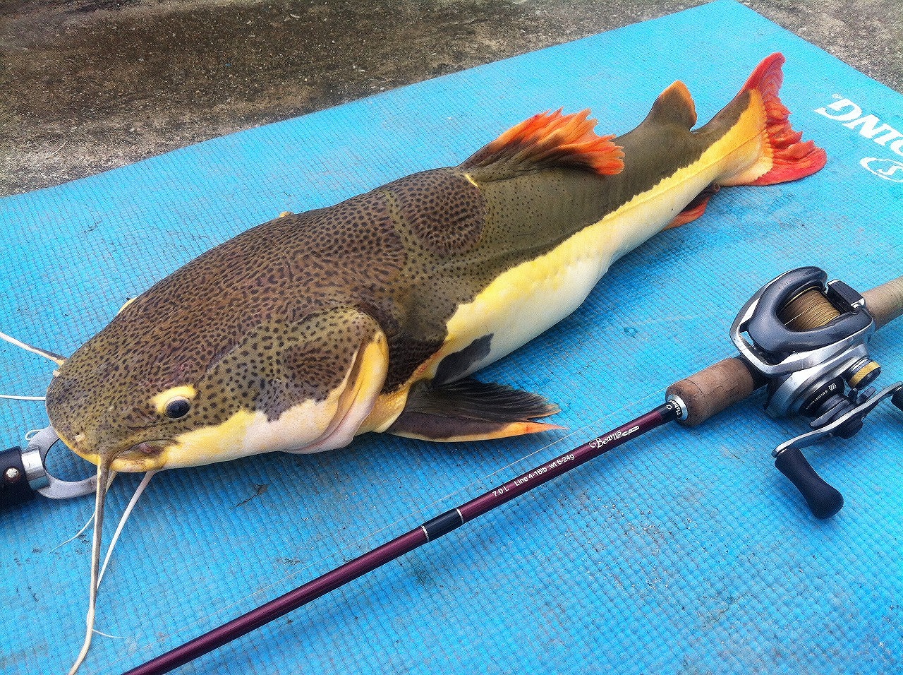 | 一番好きな魚。香港の河川にて。 写真は初のメーター越え。 コイツが我が家にもたらした経済効果は計り知れん。 |
