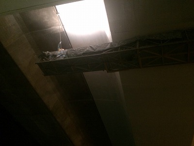 あちゃ~、頭上でペンキを塗ってやがる。