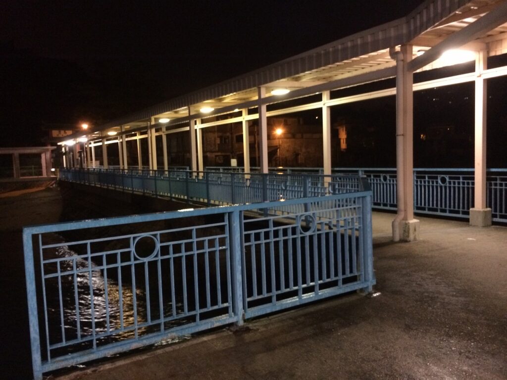 埠頭の岸際を流すと一発でタイリクスズキがヒット。