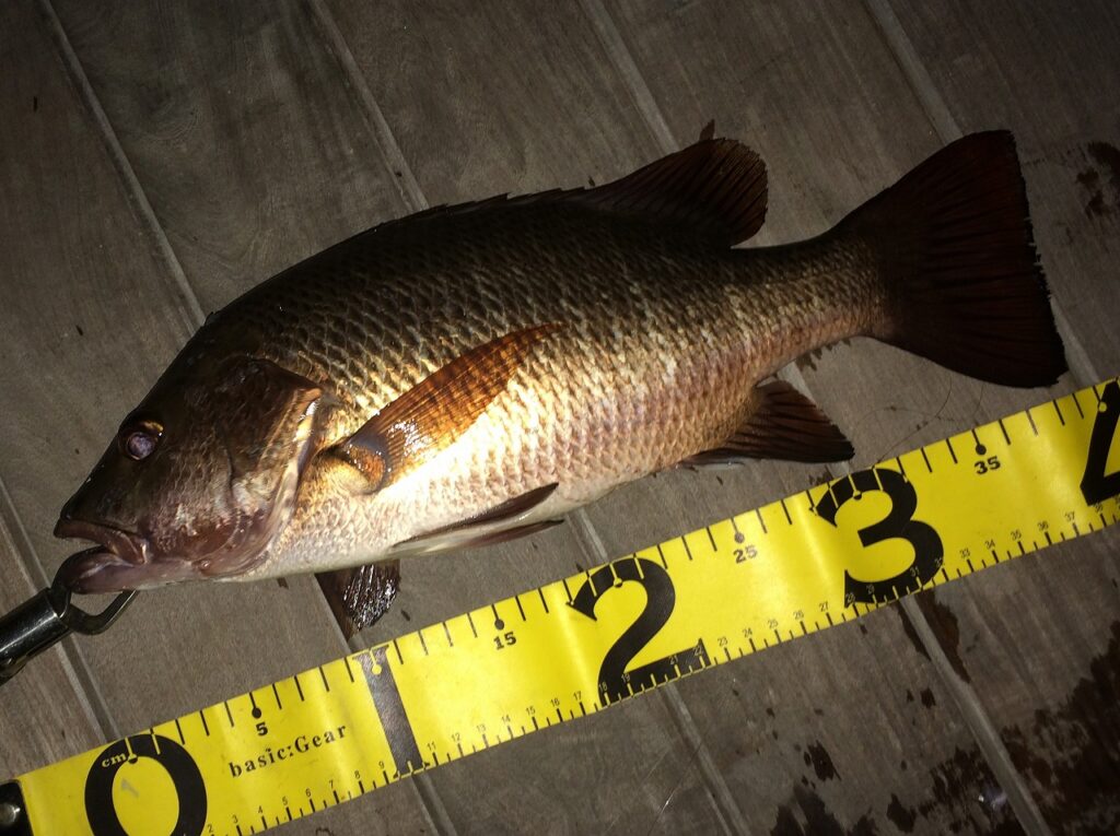 それにしてもマングローブジャックの背鰭の形状・尾鰭、尻鰭の太さを見るとかなりのファイターなんでしょうね!大阪湾ではボラが外道なんですけど(笑)