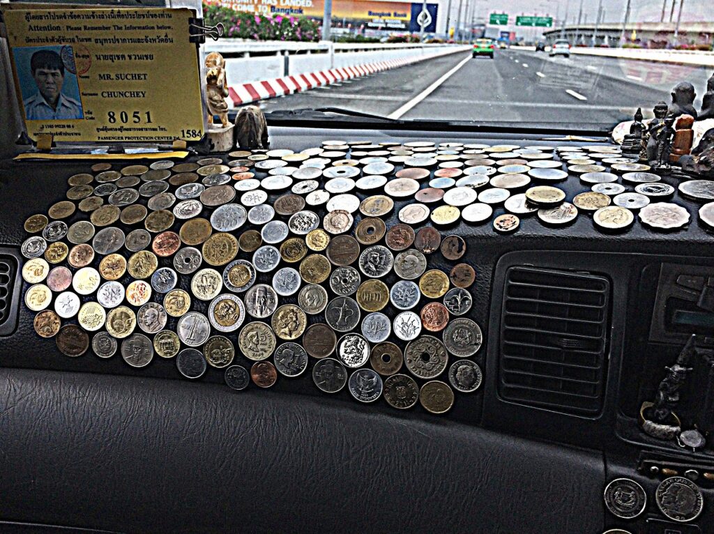 ダッシュボードの硬貨を写真に収める振りをして、ドライバーの名前を記録した。
