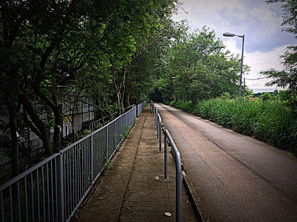 誰もいない道をテクテクと。