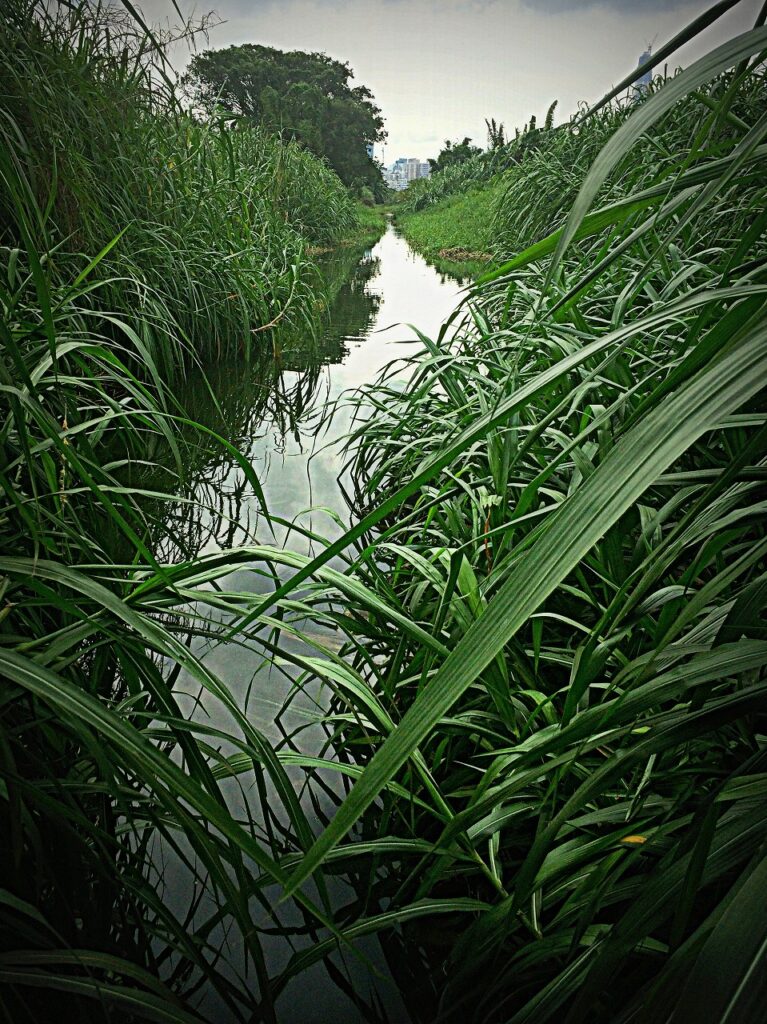 少し先は水草生い茂る。