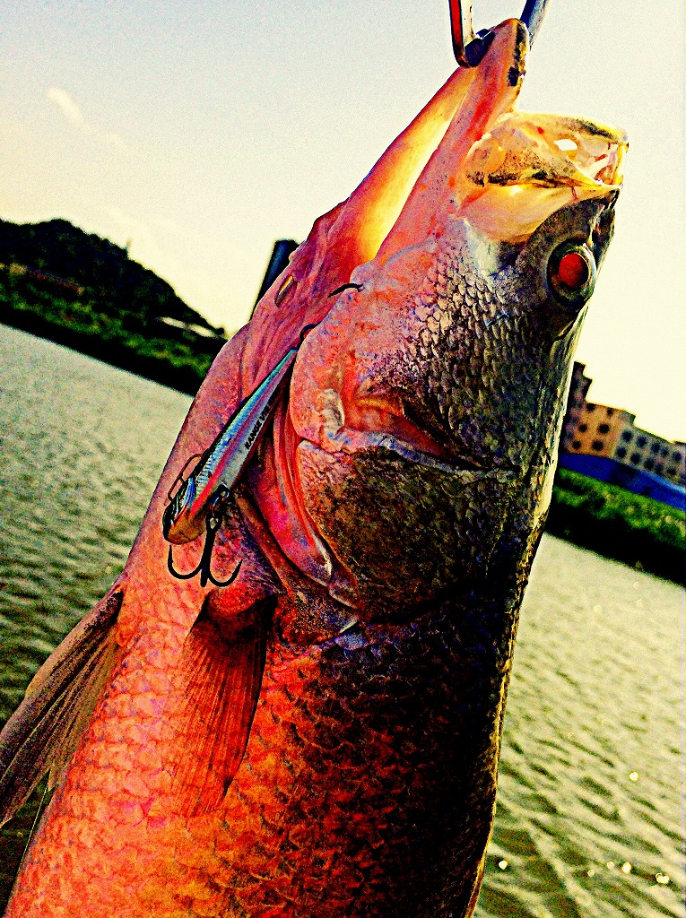 お、赤いバラマンディ?