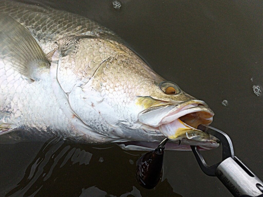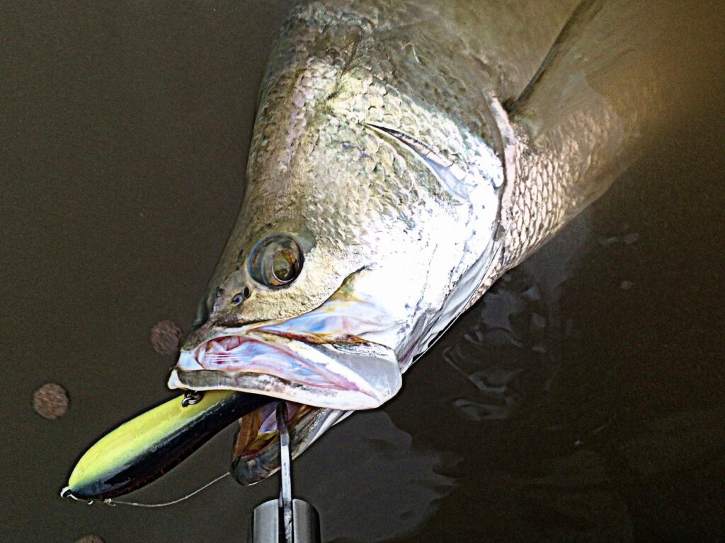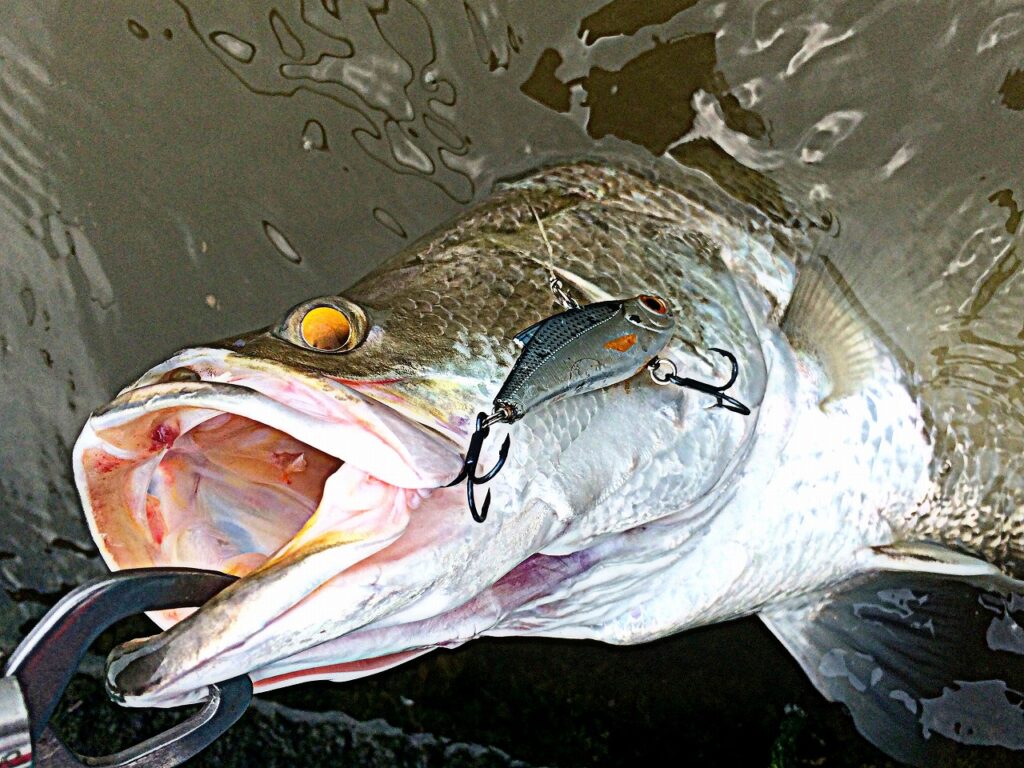 釣り堀のバラマンディはリフト&フォールに良く反応する。