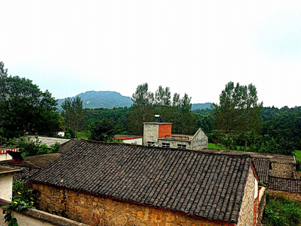 これは嫁さんの実家の窓から撮った村。
