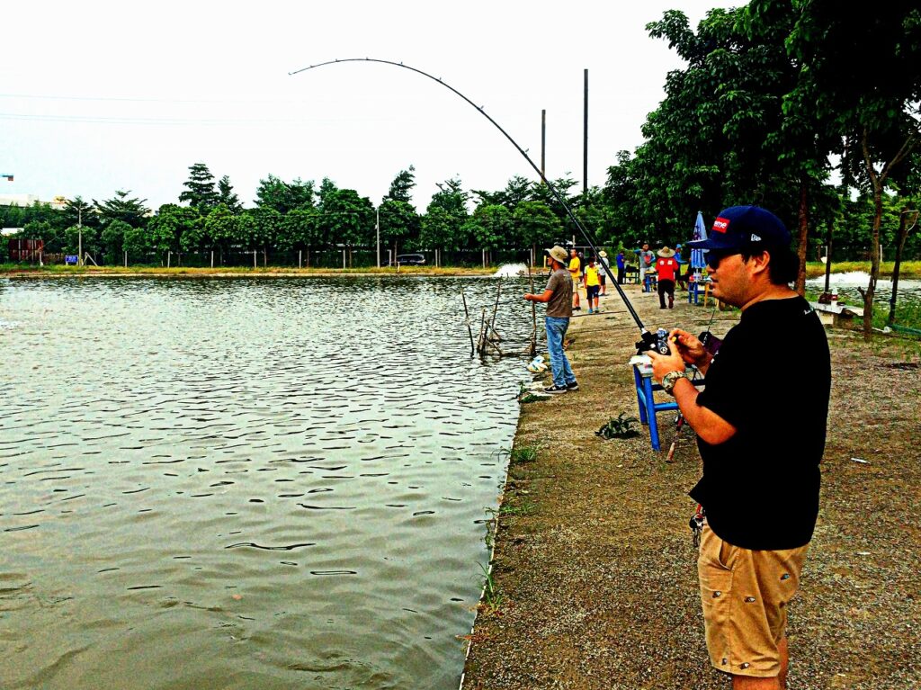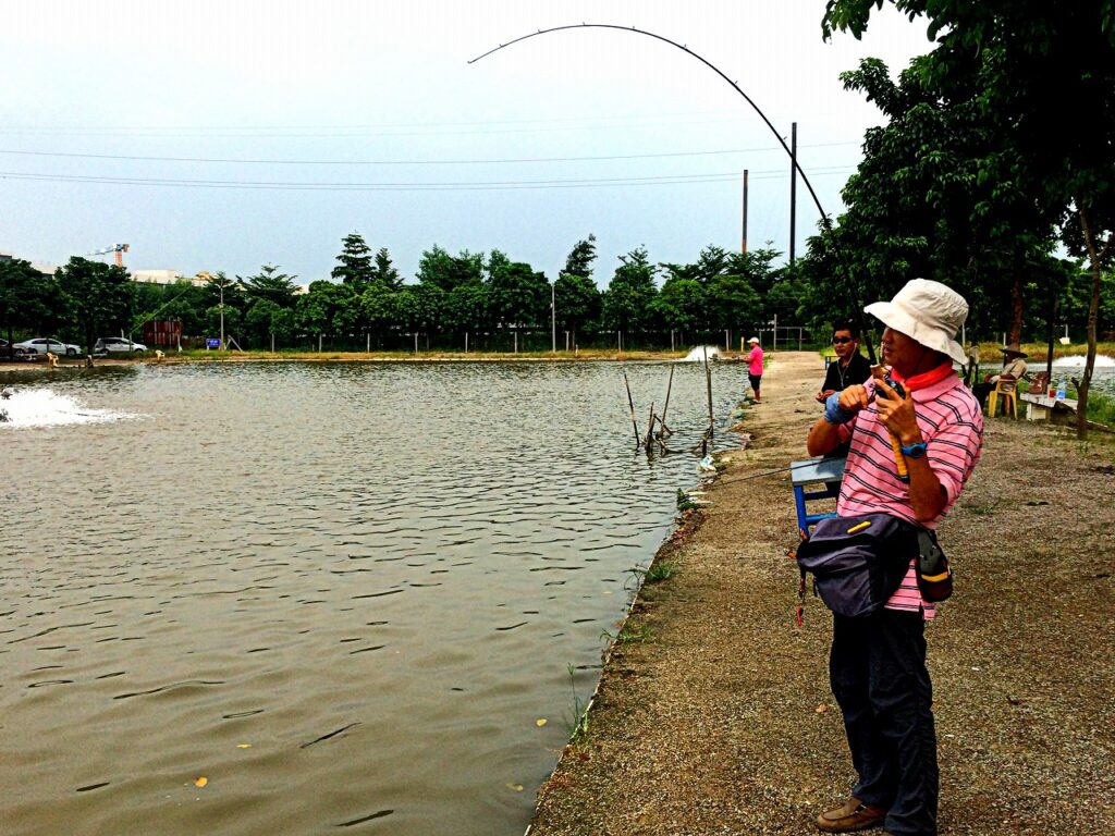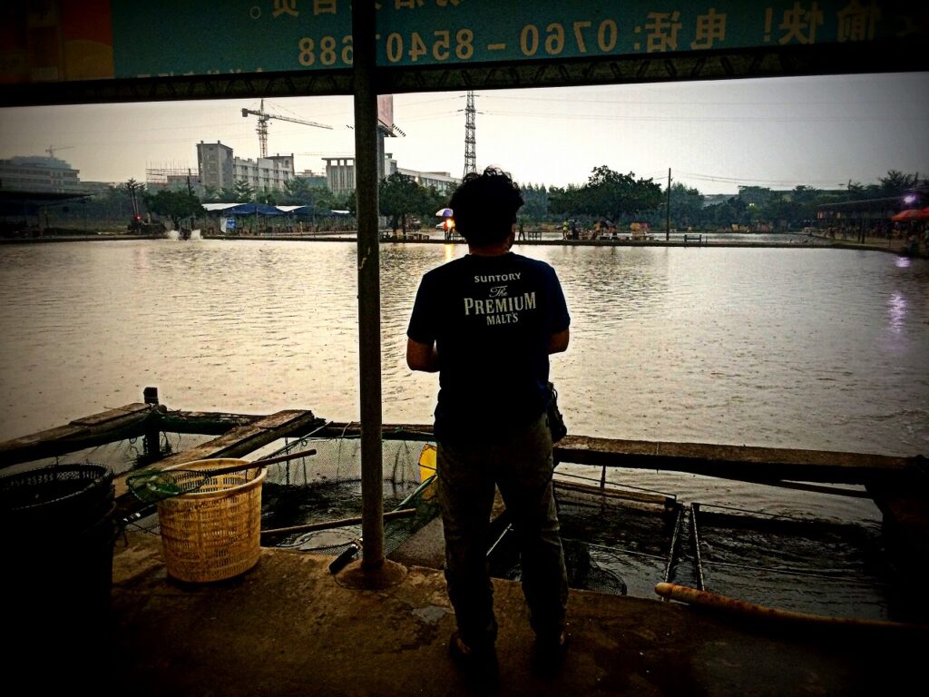 舞台は中山市郊外のバラマンディ釣り堀。