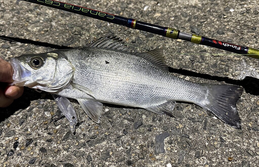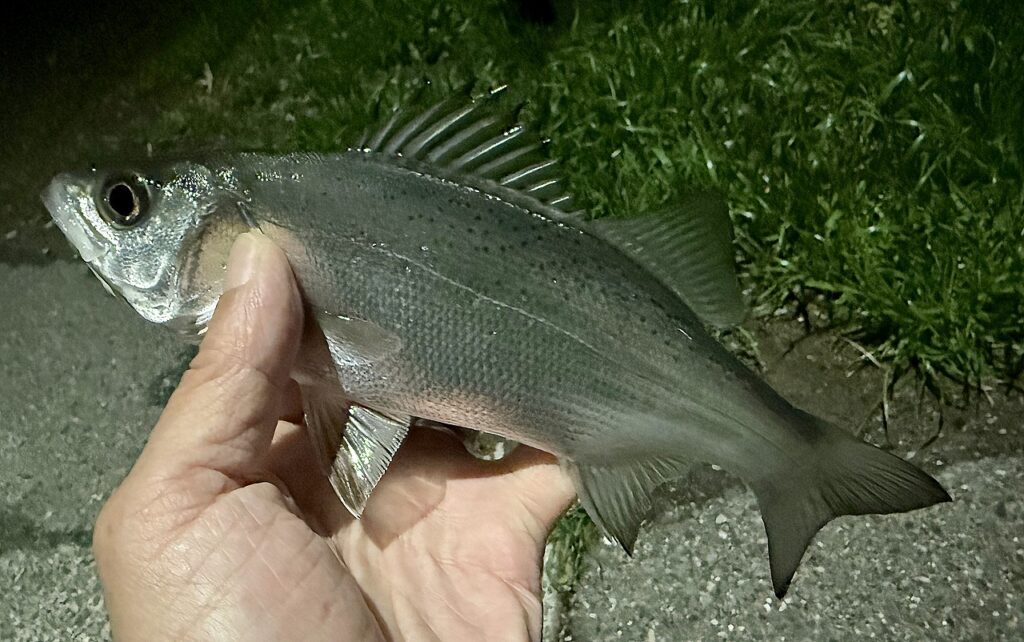 毎日セイゴを食ってます 2nd 2026/3/11 3月に入ってから、セイゴが毎回釣れてる。サイズは20-30cm位と少し物足りない。ちょっと飽きた。変化が欲しい。 息子に楽しませれば何か変わるかも。残念ながらこの1匹で満足したらしく、翌日からまたひとり。 綺麗な写真でも撮れればと思ったが、夜の撮影はムズいな。 今は食べる事を目的にポイントへ通う。もう5日連続でセイゴを食べてる。やっぱり変化が欲しい。